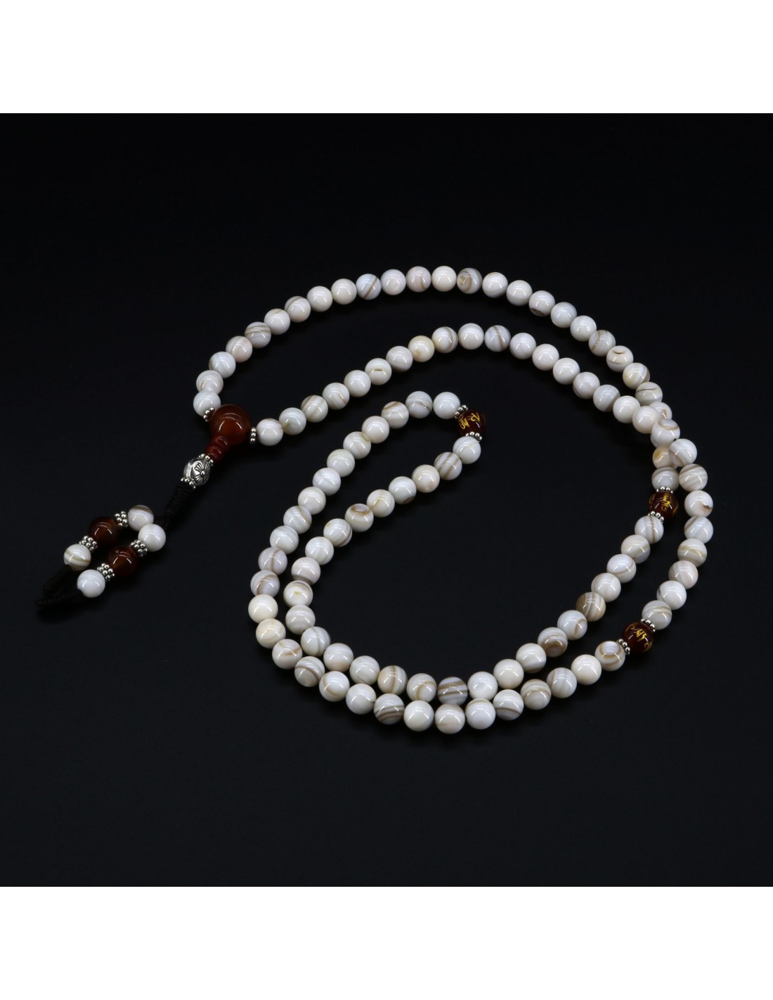 White Mother Of Pearl Japa Mala and Bracelet Set/ Chanting Beads